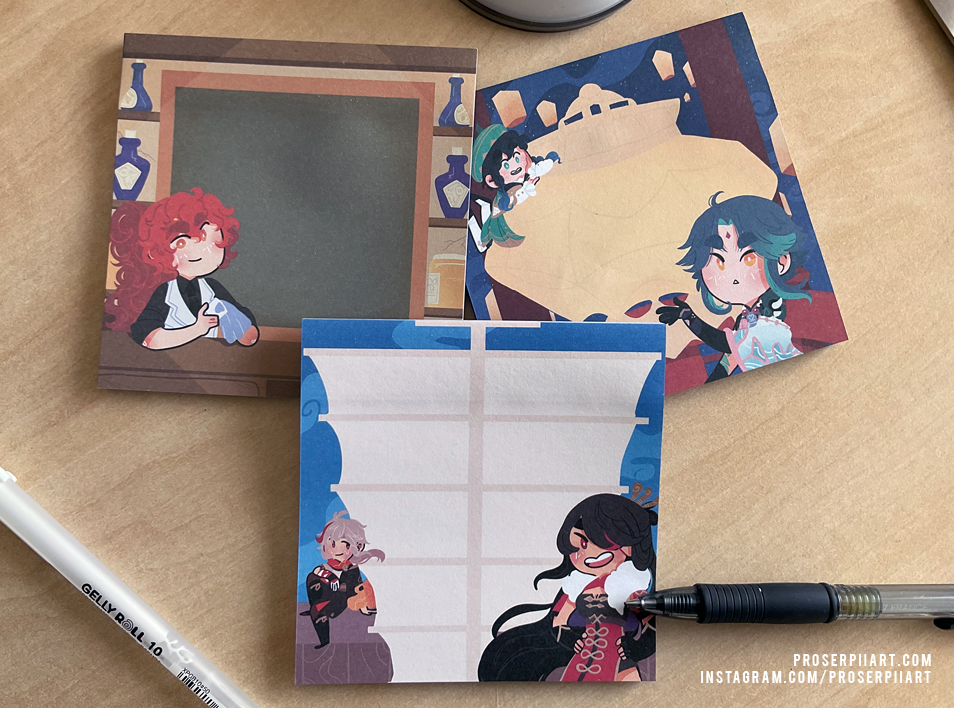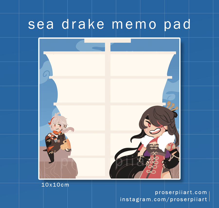 Little memo pad featuring Liyue's most fearsome pirate Beidou and her newfound sidekick Kazuha! With these cute memo pads you'll never forget a thing again (probably)!