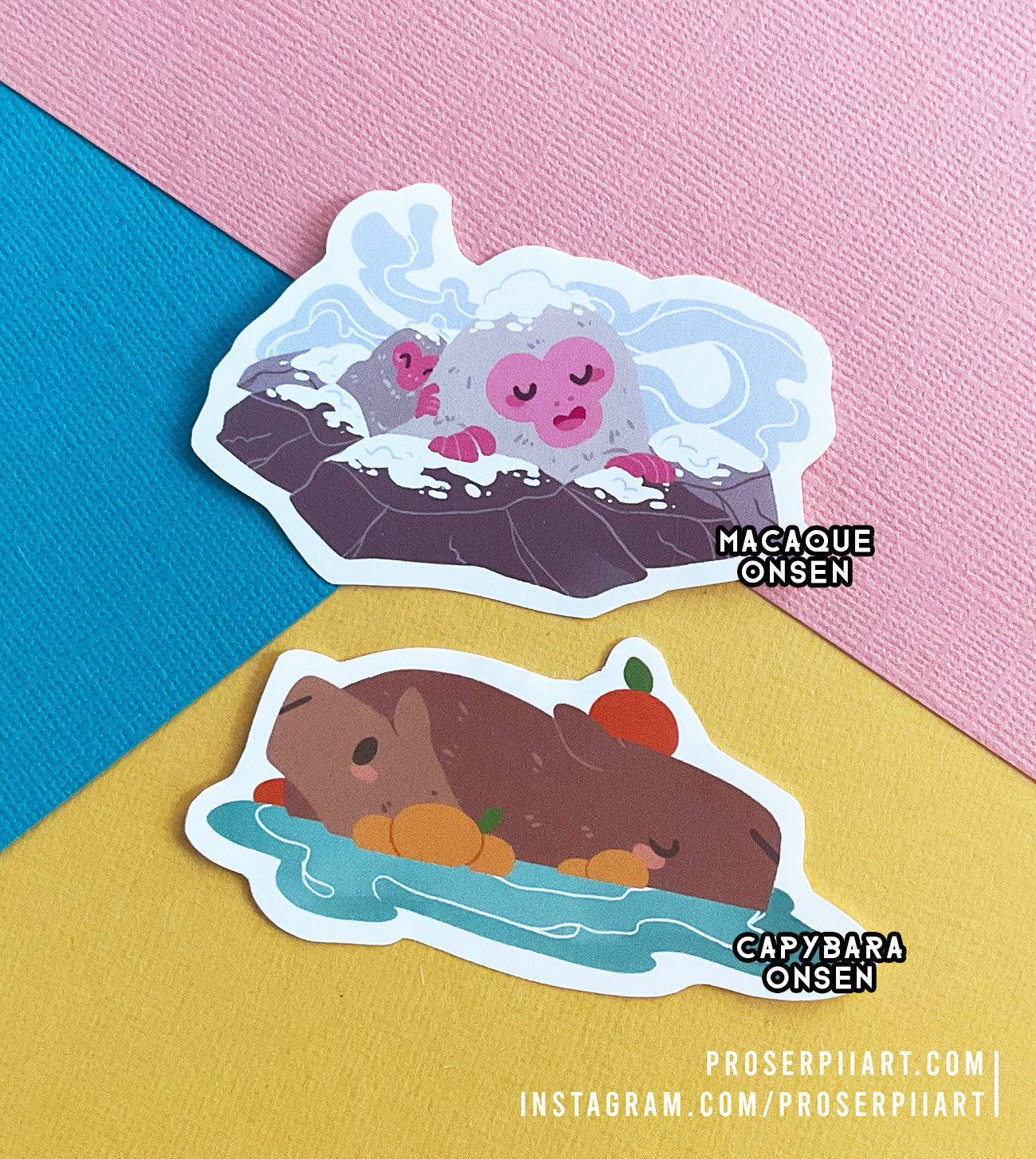 Cute little animal hot spring stickers These Capybara and Moacaques definitely know what the good life is!