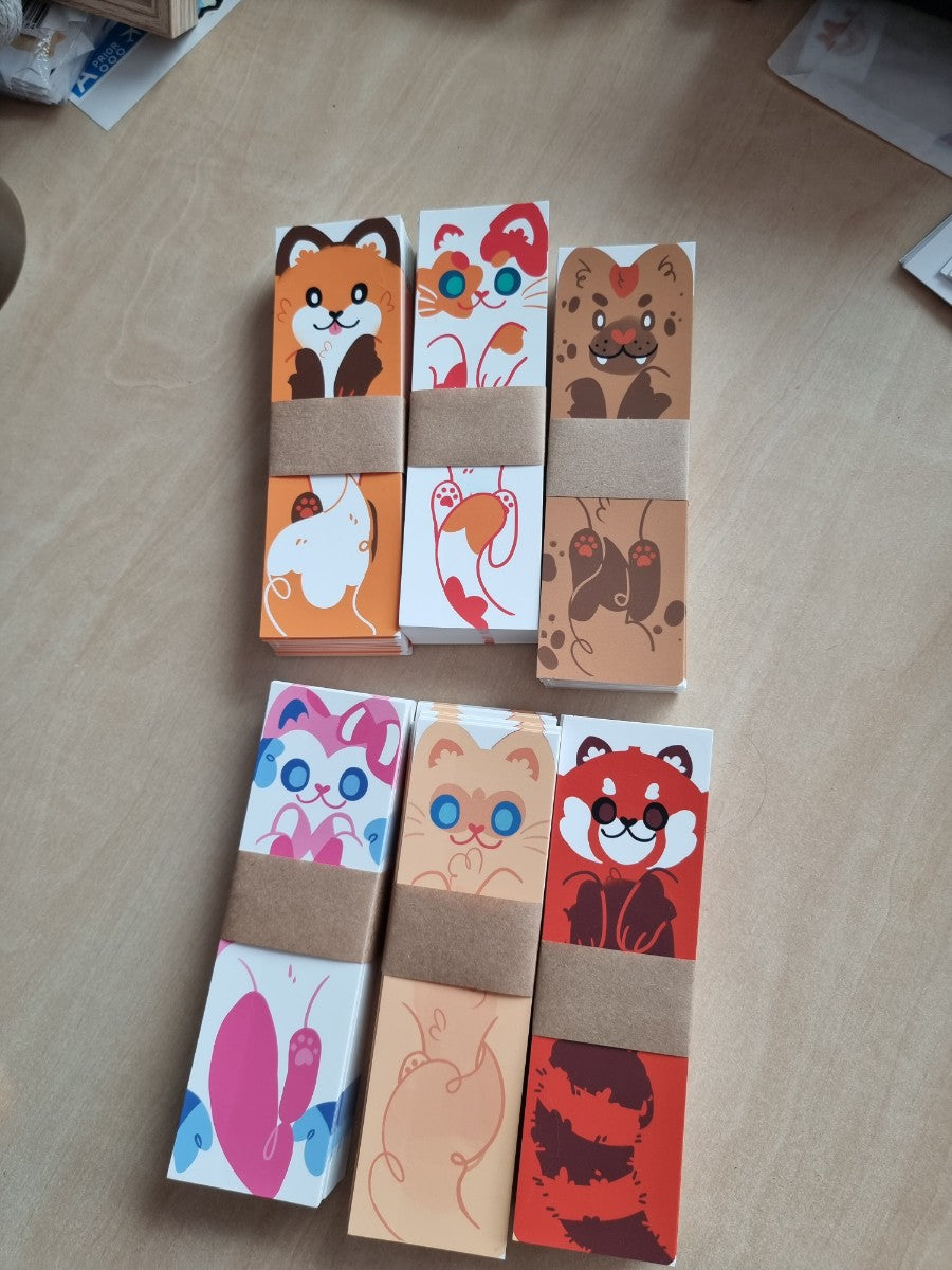 the B-grade bookmarks are as shown on the last image! The printer messed up and didn't cut out the shape of the bookmarks in the first batch.