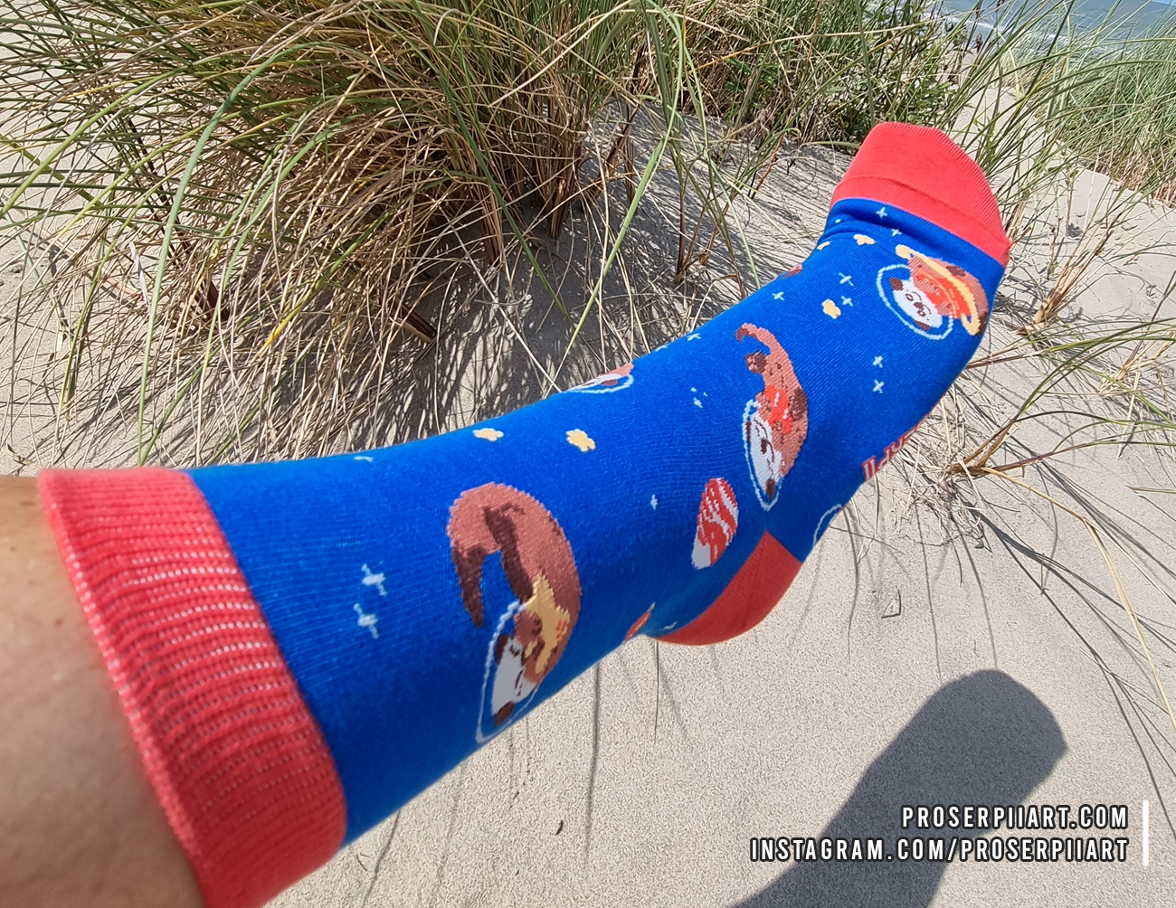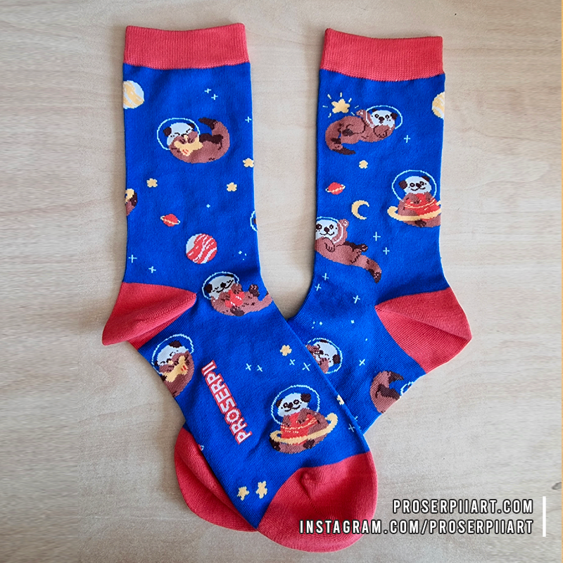 These cute colourful socks feature a plethora of otters floating around in space, just swimming amidst the stars as otters do. Don't you wish you could visit otter space?