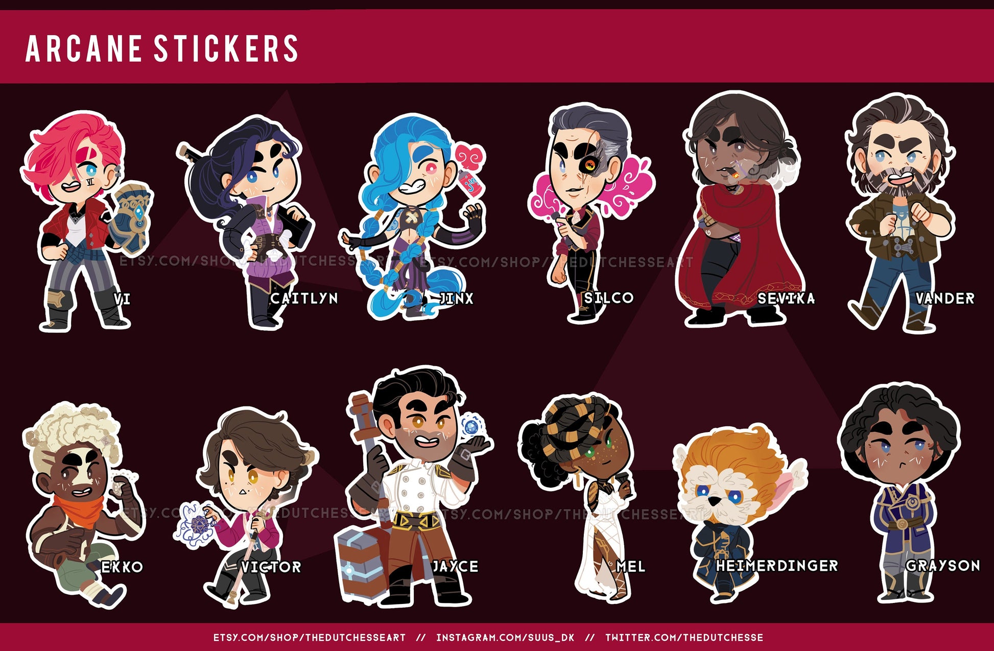 Stickers inspired by the show Arcane! Perfectly suited for laptops, game consoles, notebooks and journals, or any flat or curved surface at all. They're not entirely water-proof so only suitable for indoor use, but they can handle a little wear and tear.
