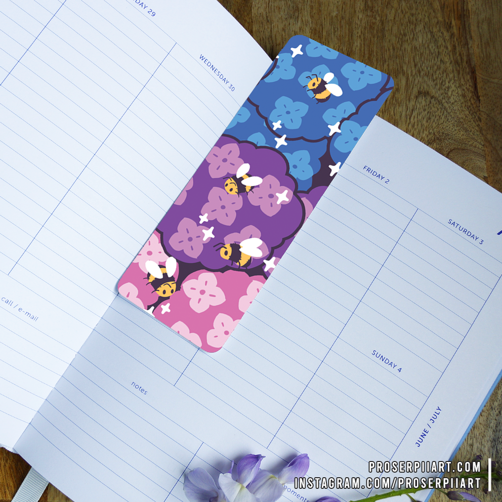 Hydrangeas and Bees Bookmark (Bi Pride Bookmark)