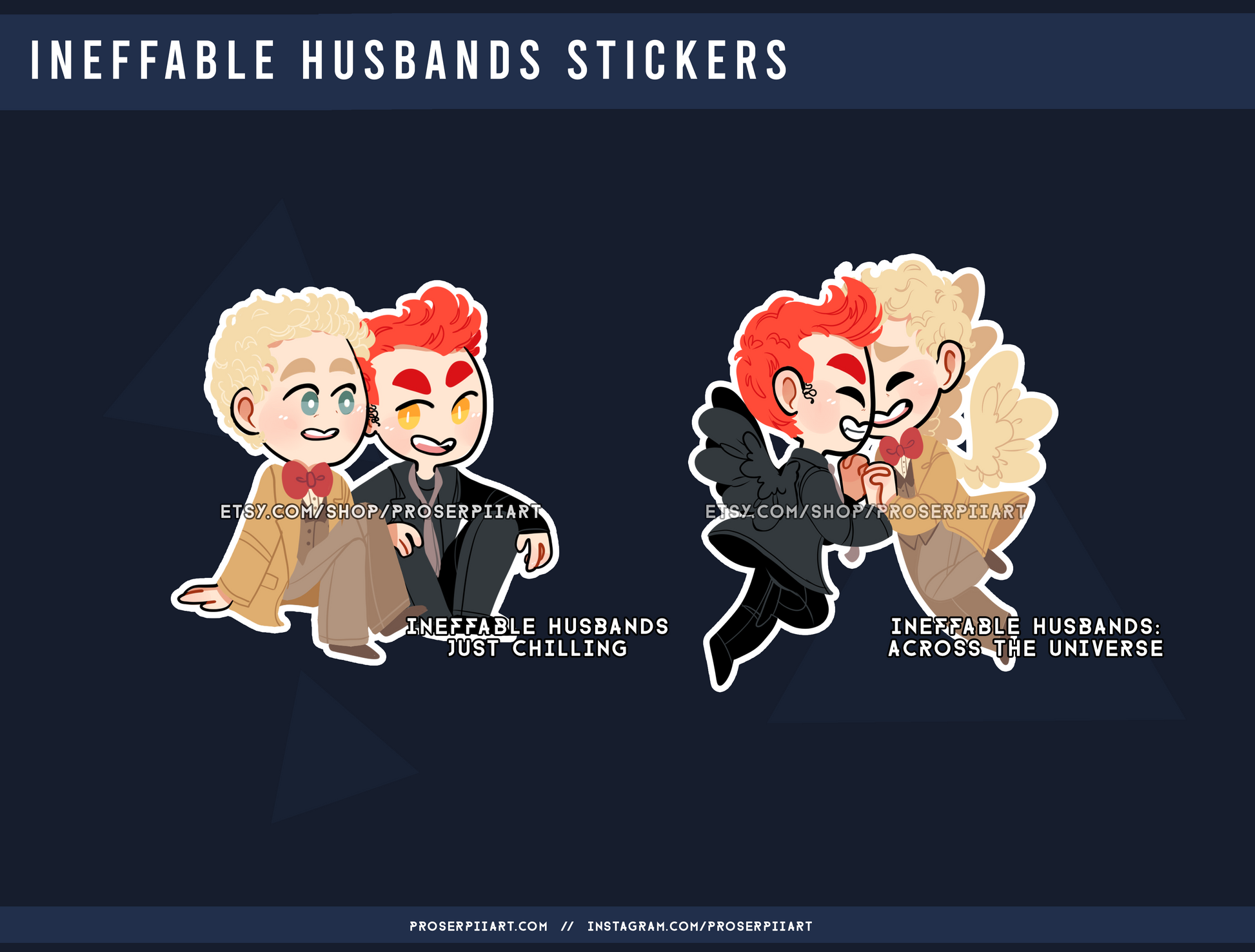 Two ineffable husbands! These adorable stickers feature characters from Good Omens!