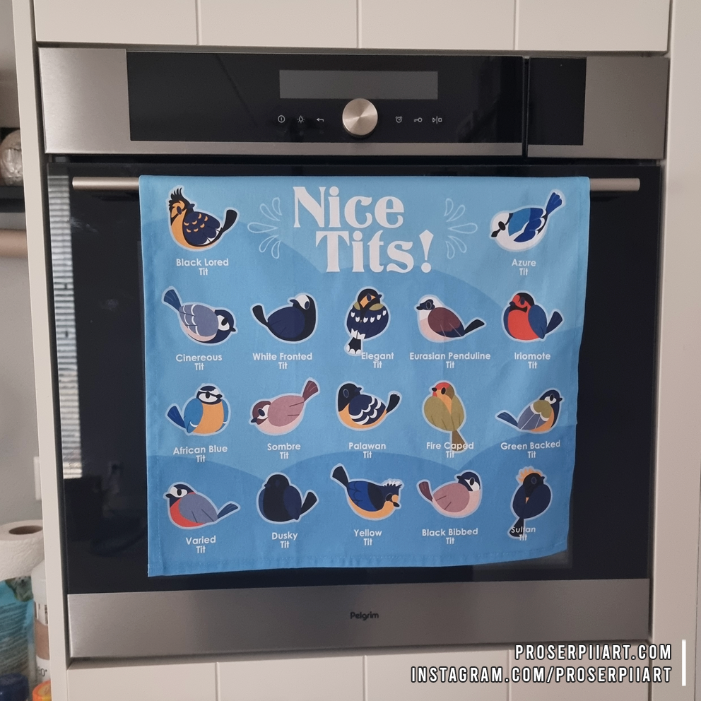 Cotton tea towel/kitchen towel featuring a lot of tits!