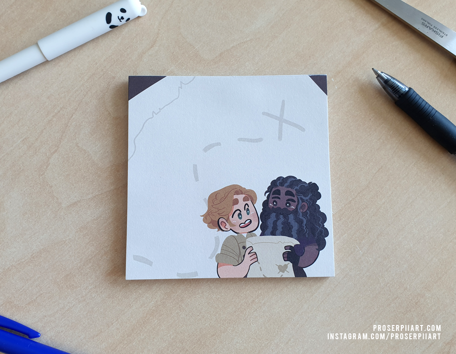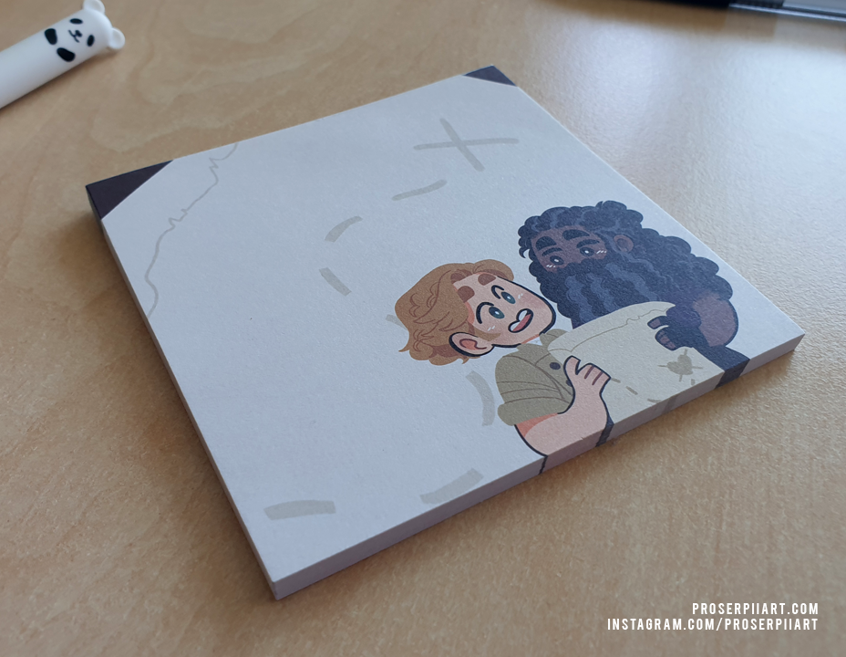 Little memo pad featuring Stede and Edward from the show Our Flag Means Death! With these cute memo pads you'll never forget where you buried your treasure again (maybe)!