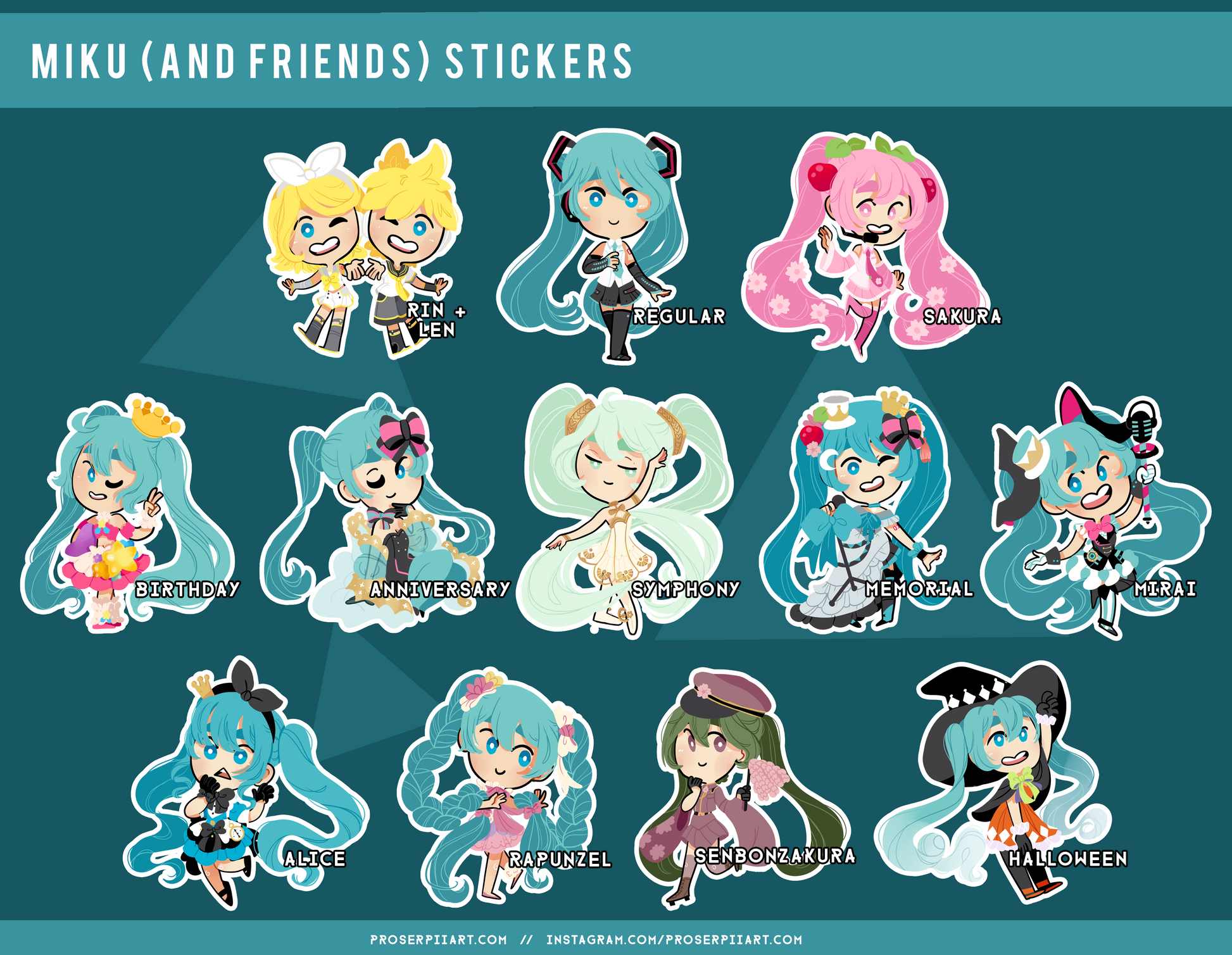 Grab your favourite Miku outfit as cute stickers to decorate your bag, your shirt, your jacket, and your life!