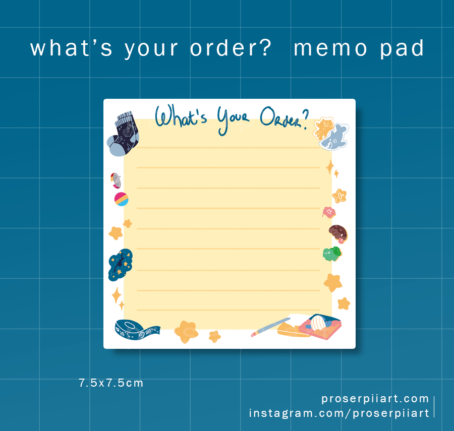 These 7.5x7.5cm (or ~ 4x4 inch) memo pads are excellent for taking down little lists! Originally designs for use at conventions, I'm offering them for sale for anyone who needs a cute little memo pad to jot down your lists on.