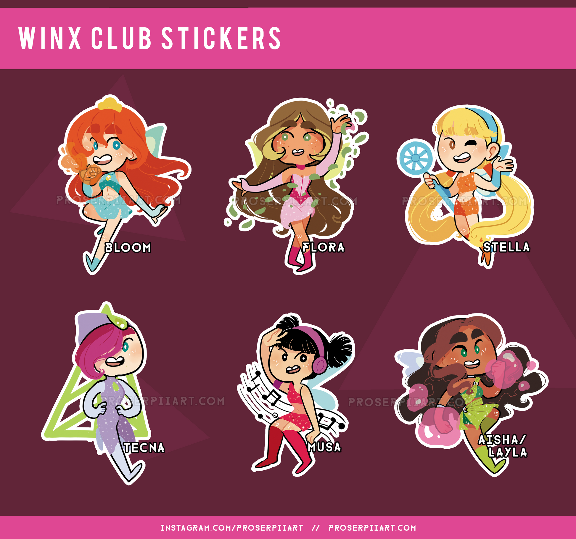 A blast from the past! Stick your favourite Winx Club fairy on every surface you own! Each is roughly 6-7cm, printed on matte sticker paper, and carefully cut out with love. These stickers are ready to infuse anything with just a little bit of magic~